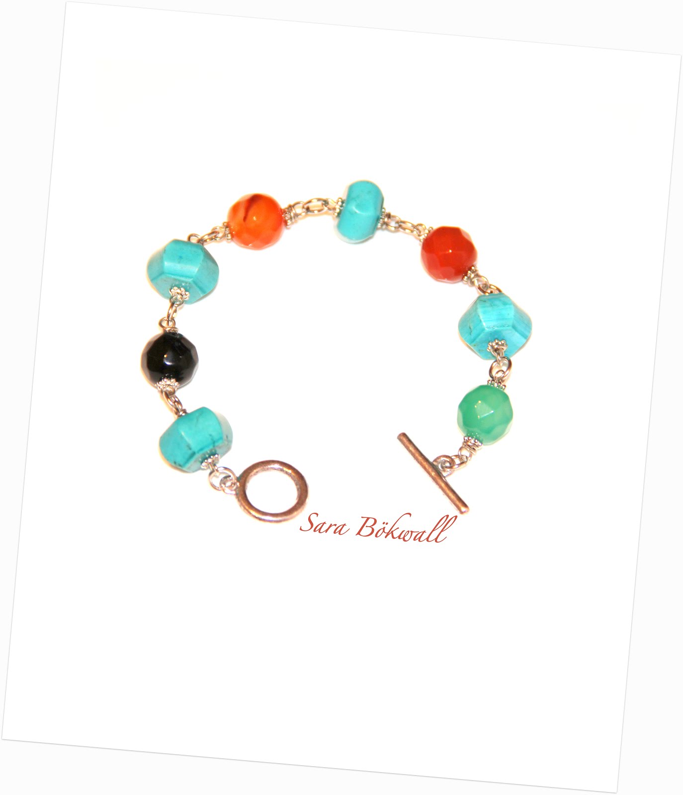 Julen är över och då är det väl ändå sommar snart? Åtminstone vår? Jag har svårt att hålla mig till tåls. Det syns även i min smyckestillverkning. Agat och howlite sprider sommarkänsla! Pris: 199:-.